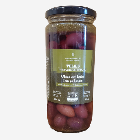 Schwarze Oliven mit Kräuter "Telies", 250g
