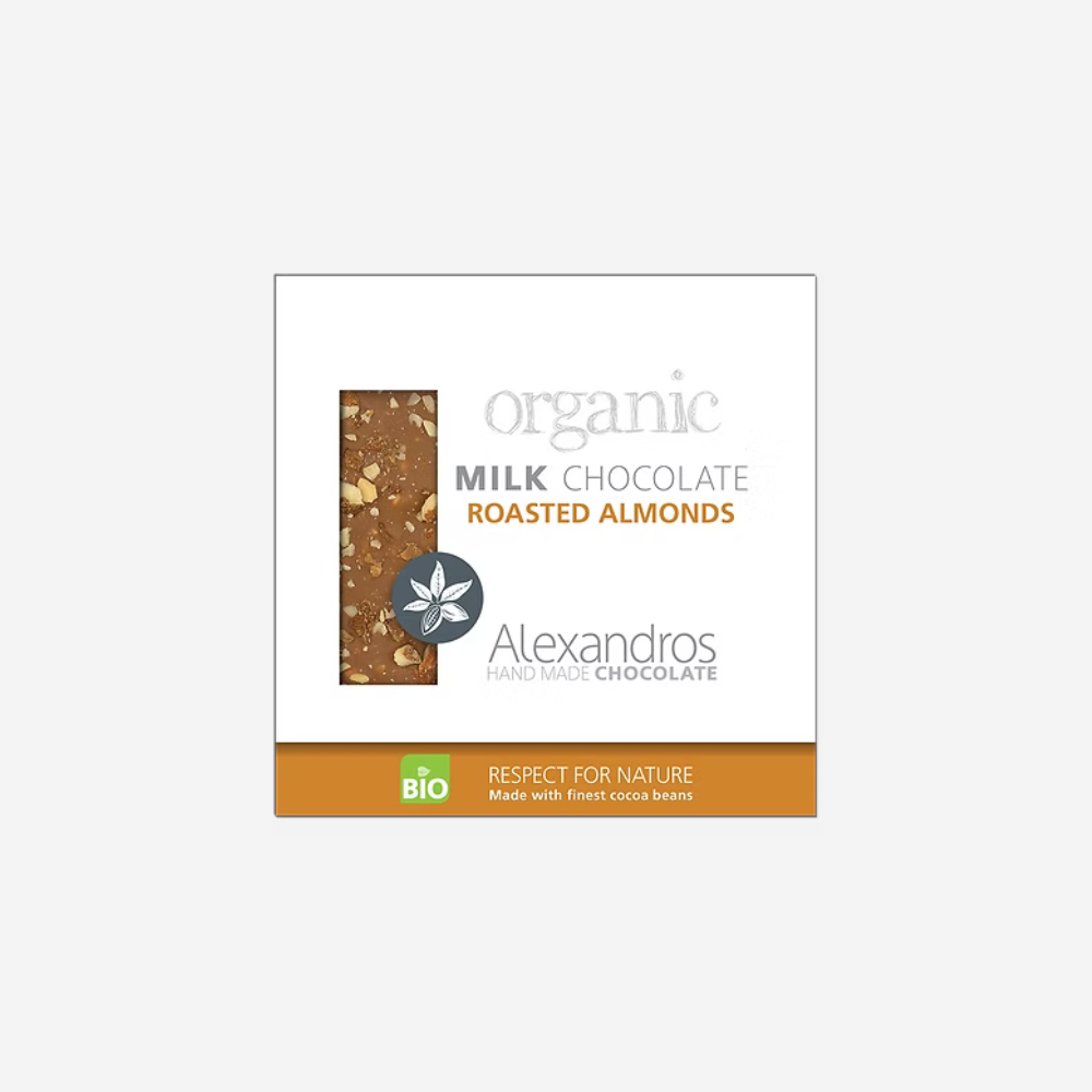 Eine perfekte Kombination aus Schokolade und Nüssen. Knusprig geröstete Bio-Mandeln tauchen in unsere hochwertige Milchschokolade ein und schon kann es losgehen.